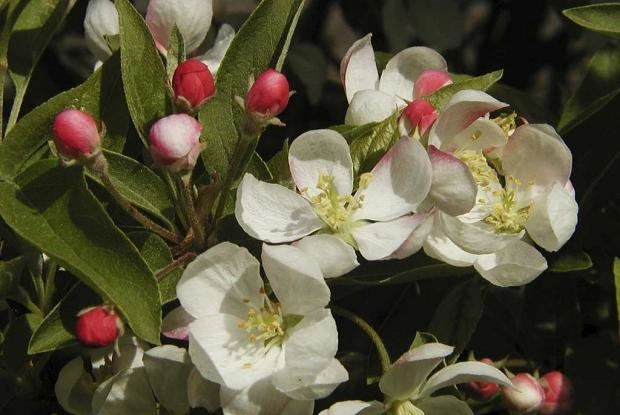 Листья черешковые, овальные, голые. Их темно-зеленый цвет осенью меняется на желтый.