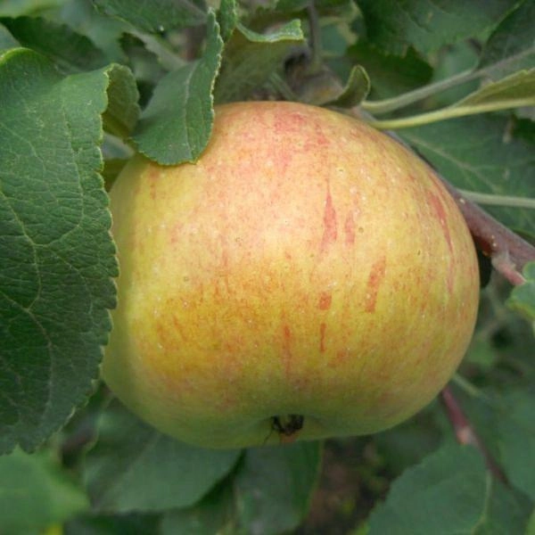 Плоды округлой, симметричной, выровненной формы, со слабозаметными ребрами. Основная окраска плодов светло-желтая, а покровная – в виде небольшого нежный румянца с легкими штрихами и полосами пурпурного цвета
