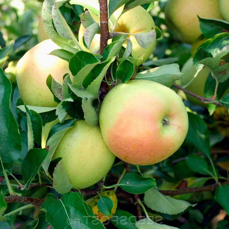 Дерево высотой в 2,5 м, урожайность при этом очень высокая — до 130 кг плодов с растения. Плодоносить начинают на третий год. Яблоки некрупные, массой 80-95 г, округлые. Кожица желтовато-белая, со слабым румянцем. Мякоть плотная, довольно сочная, кисло-сладкого вкуса, содержание сахара около 12%. Созревают в первой половине сентября. Осенний низкорослый сорт отличается высокой урожайностью, устойчивостью к холодам.
