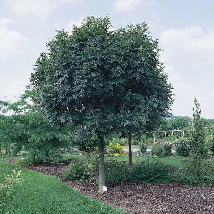| Листва | Листья непарноперистосложные, длиной до 20 см сложные состоят из 9-11 овально-заостренных листочков темно-зеленые блестящие, внешне соответствуют видовой форме, но компактнее и меньше размером.. Осенью приобретают желтую окраску или опадают зелеными при ранних заморозках. |