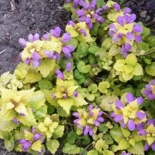 Высота 15 см. Многоглетник. Листва желто-зеленая, с белой полосой по центру, зимующая. Период цветения: Май-июнь. Цветы фиолетово-розовые. Местоположение: Солнце-полутень. Зона морозостойкости (зимостойкость) 4 (до -35С)