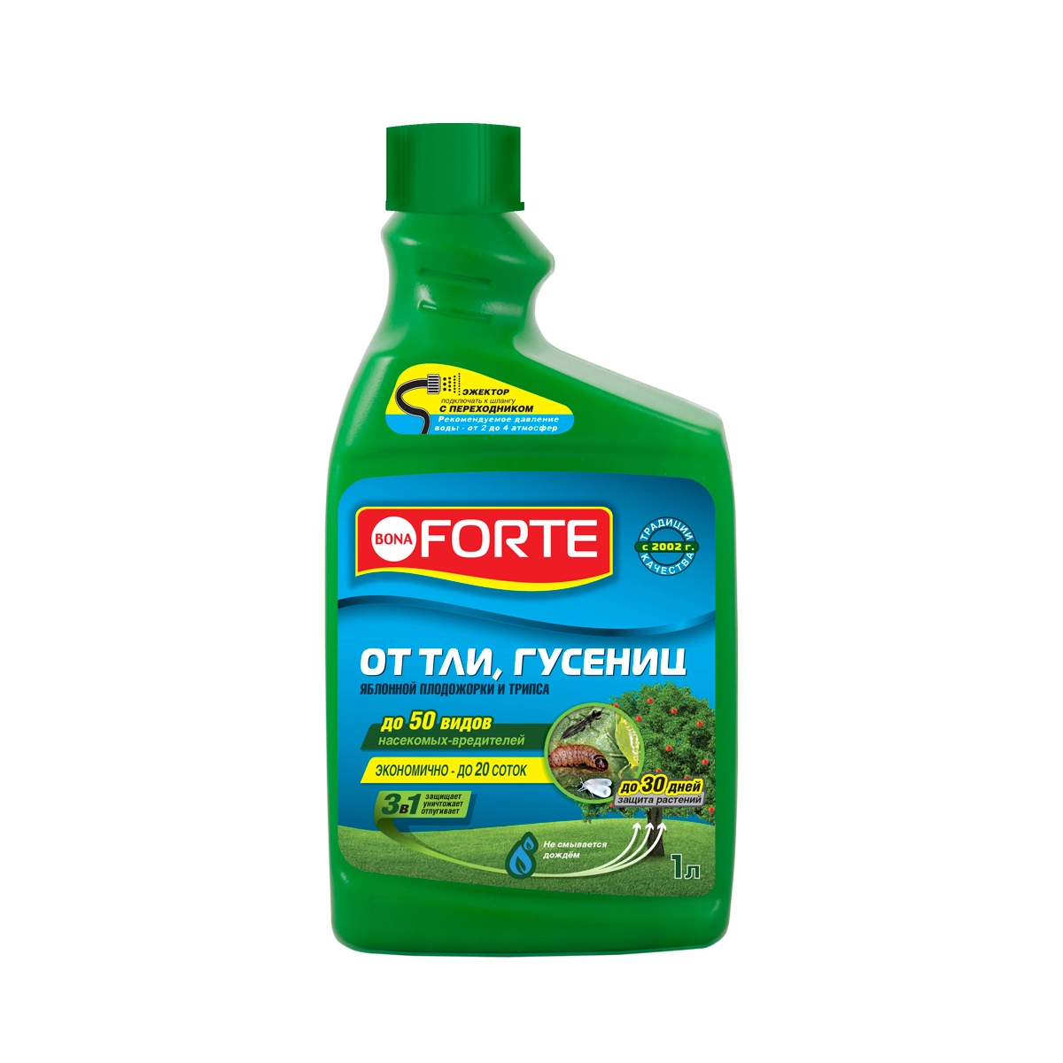 Средство для обработки плодовых и ягодных кустарников от тли , гусениц, белокрылки, трипса, яблонной плодожорки, а также эффективно против таких насекомых - вредителей садовых растений, как: листовёртка, жуки (в том числе колорадский), все виды мух, крестоцветные блошки, листовые пилильщики, долгоносики, цветоед, паутинный клещ. Защищает от 50 видов насекомых.