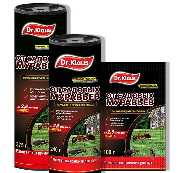 Инсектицид Dr.Klaus от Муравьев и др насек гранулы 375г/240г/100г
