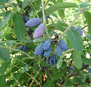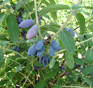 Ароматные плоды среднего размера, массой 0,7 - 0,9 г. Форма удлиненно-овальная с плоской верхушкой, голубовато-синие, с сильным восковым налётом. Осыпаемость низкая.