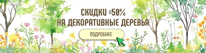 До 31 мая 2026 года на весь ассортимент деревьев собственного производства действуют специальные условия*: скидка до 50%.